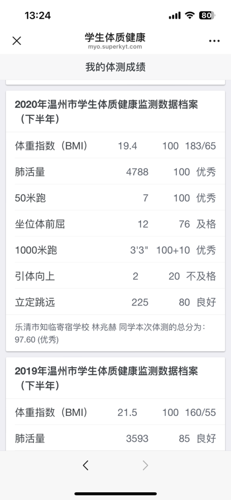 体测成绩单